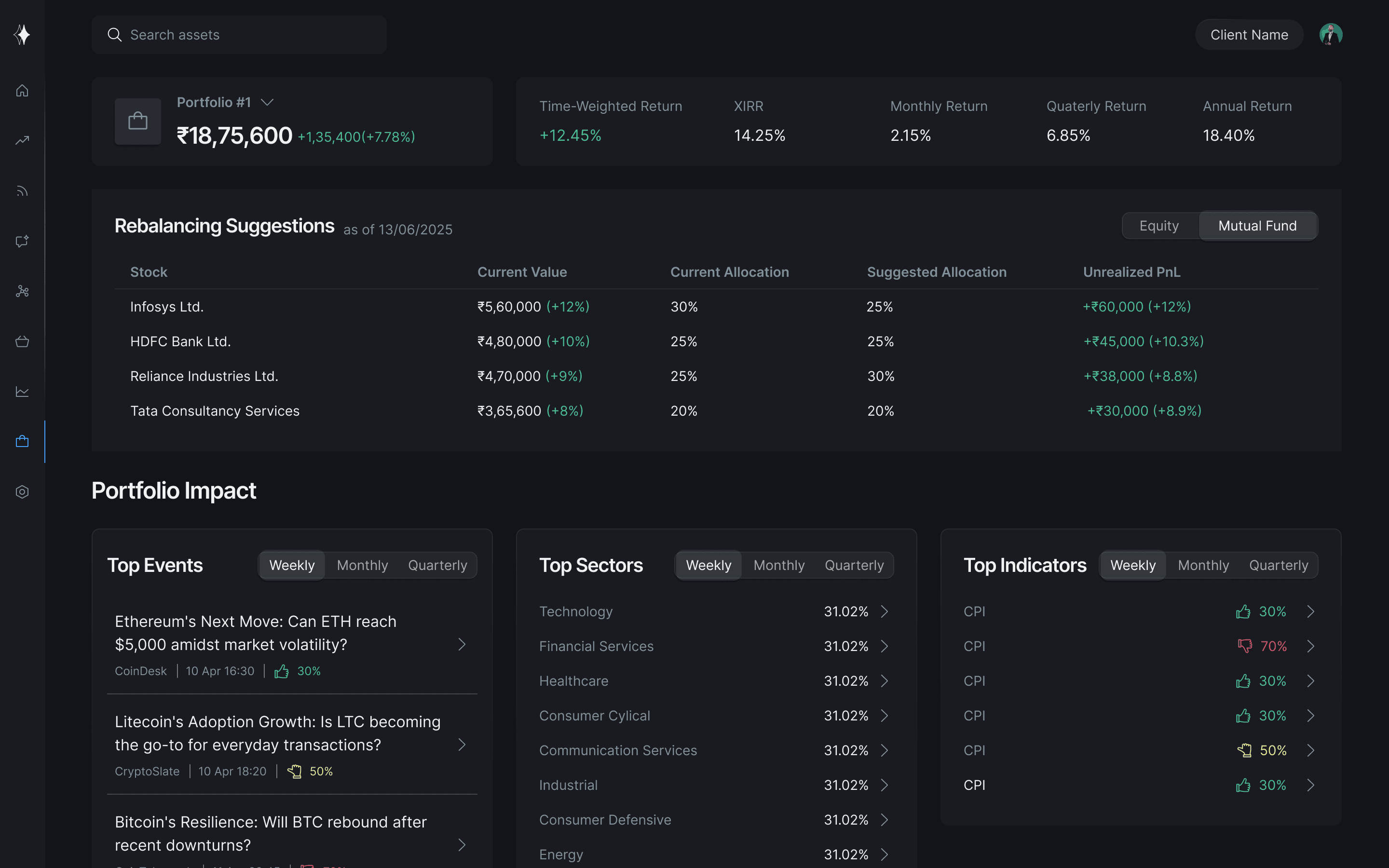 Seamlessly explore, build, and manage your investments across asset classes — guided by your goals and powered by AI.